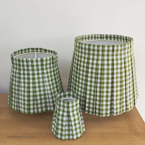Handmade fabric drum lamp shades with white, brushed silver or gold linings...