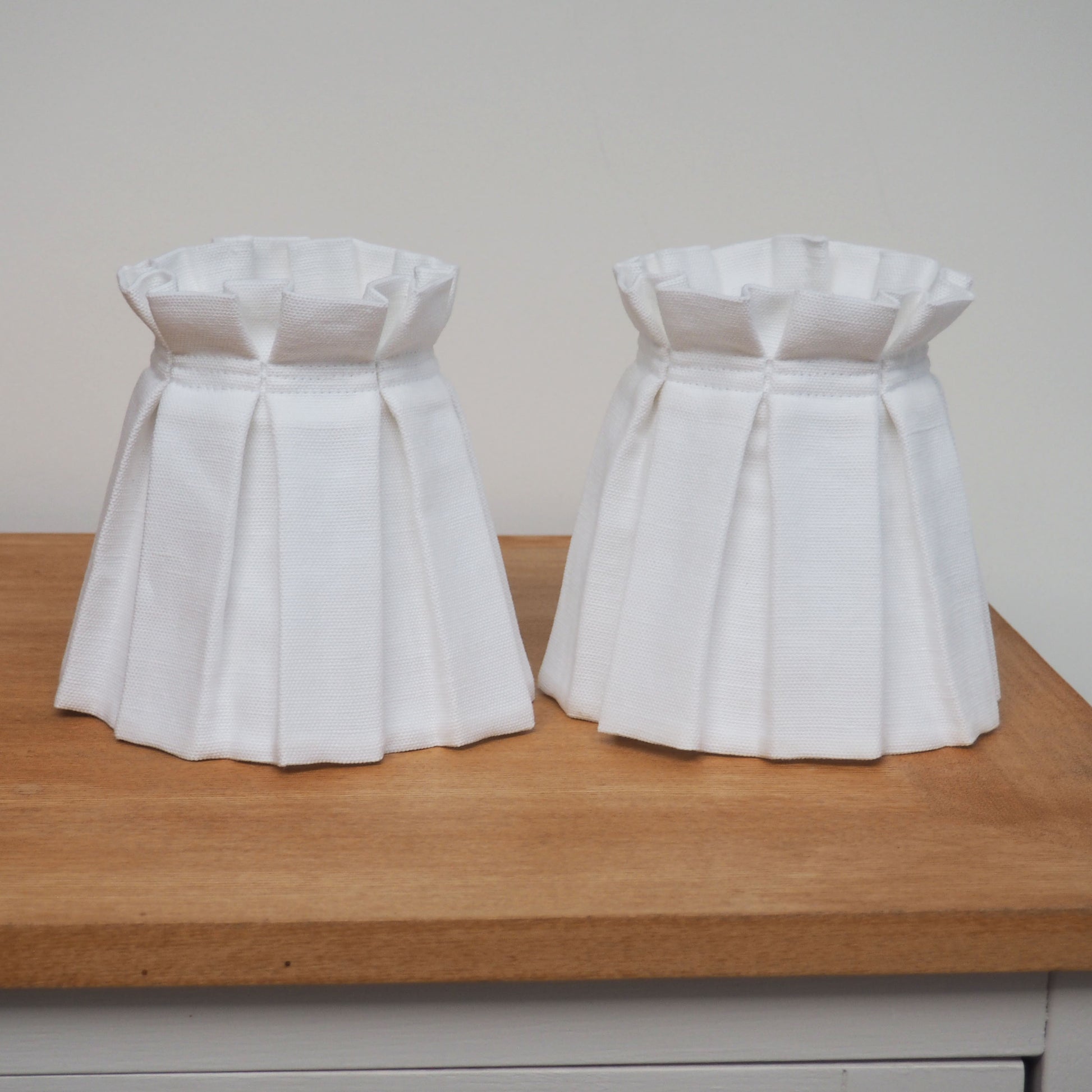 Handmade candle clip box 100% linen white fabric loose lampshade cover skirt which sits over a plain candle clip shade (comes complete with shade). Candle clip shades sit directly on top of a candle shape bulb. Also available in other colours by request.