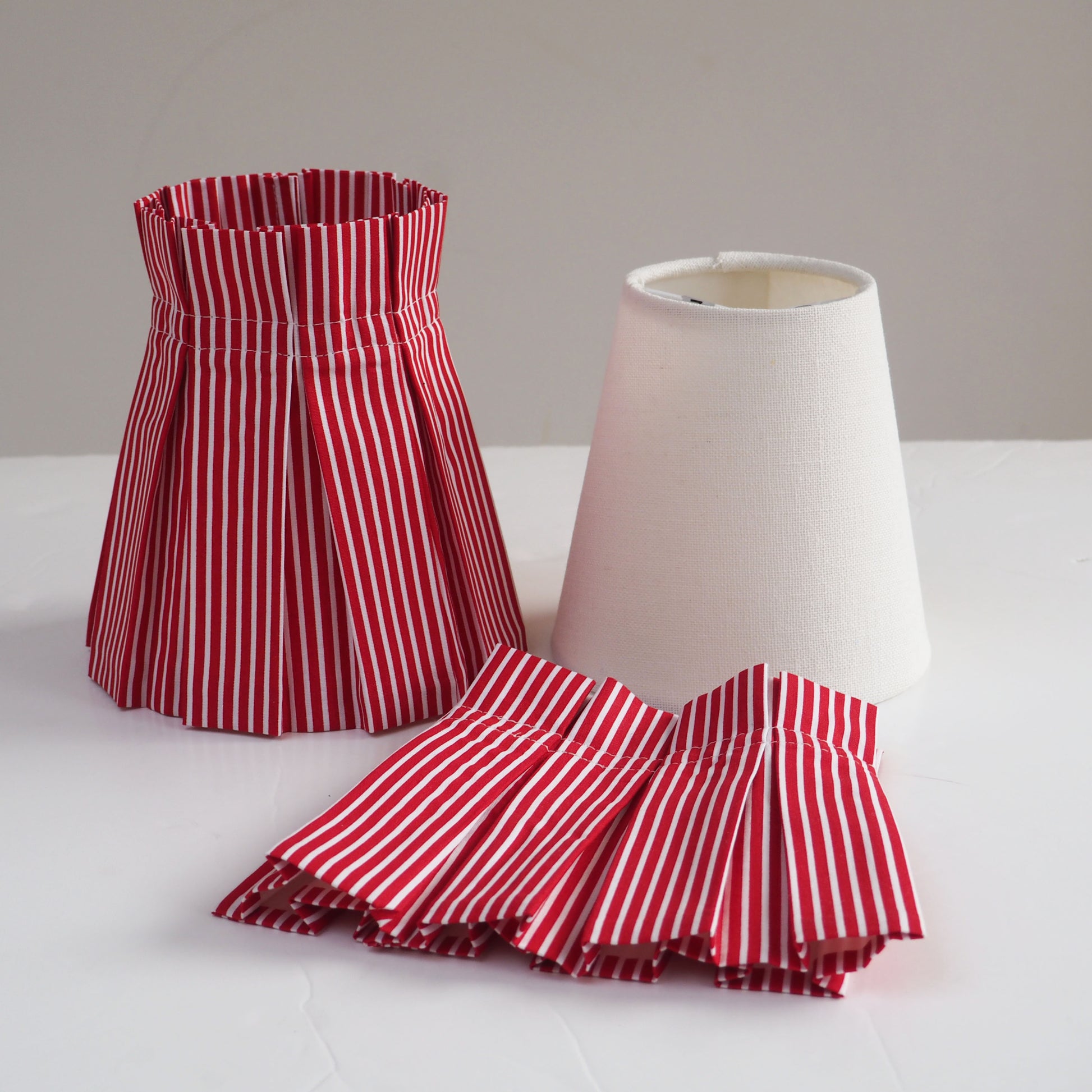 Candle clip box pleat red/white candy stripe fabric loose lampshade