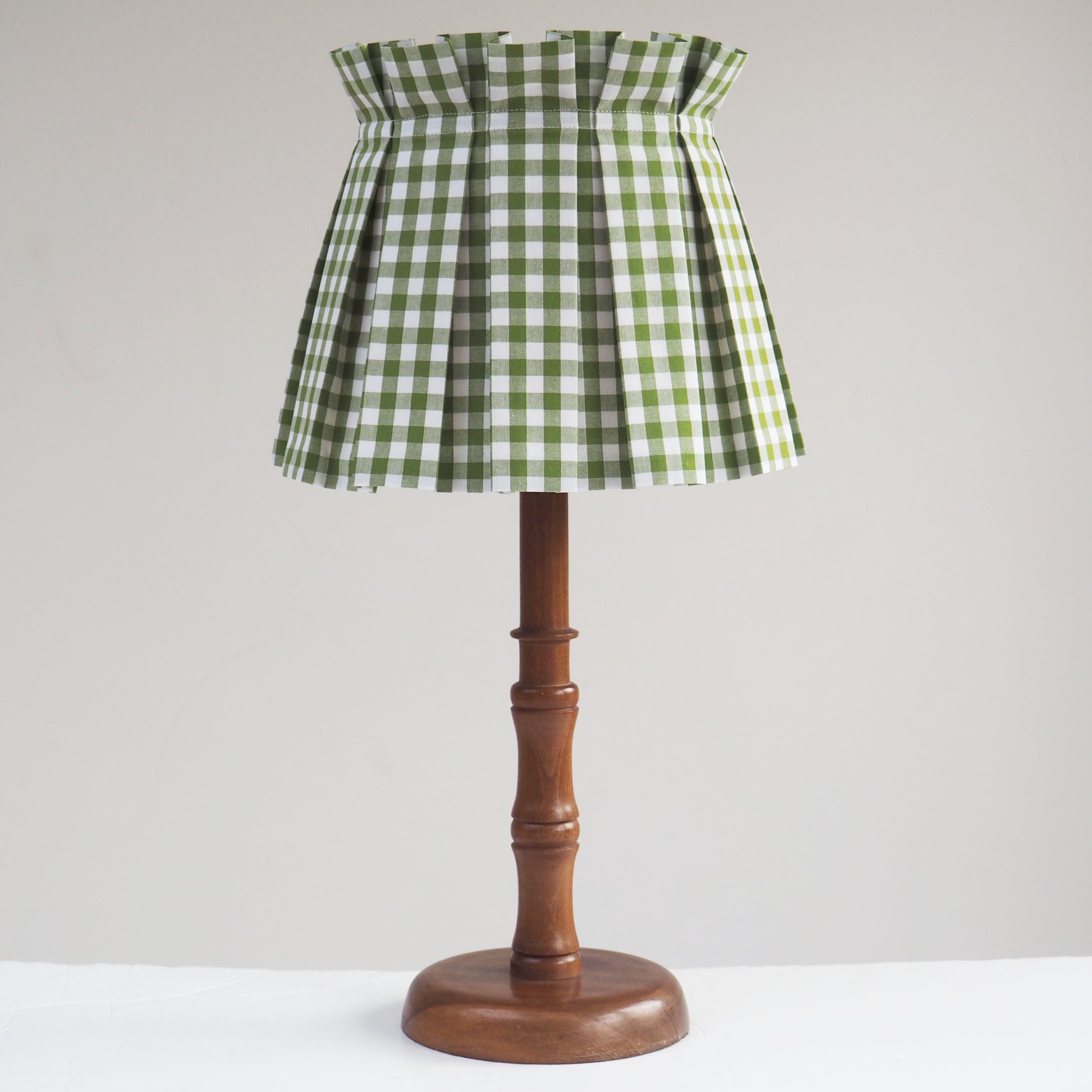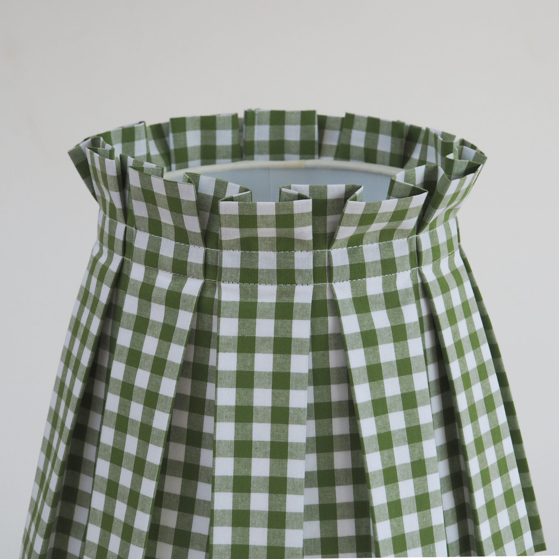 MEDIUM box pleat green gingham fabric lampshade