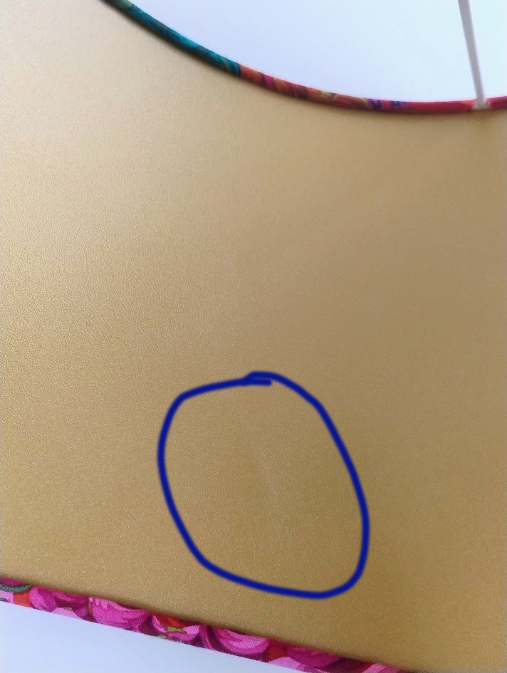 This shade is a sample and has a slight defect - small dent in the inner pvc see photo 4. This lampshade is non-returnable. You are purchasing the shade shown in the photos.