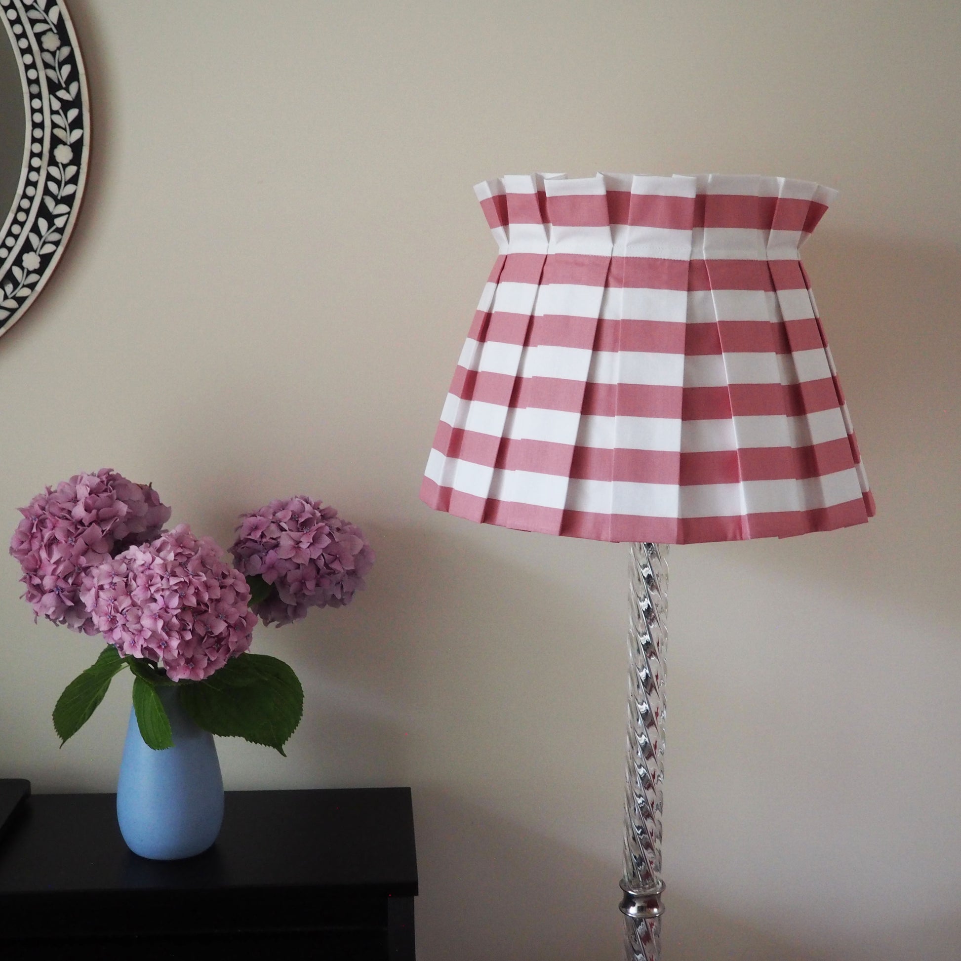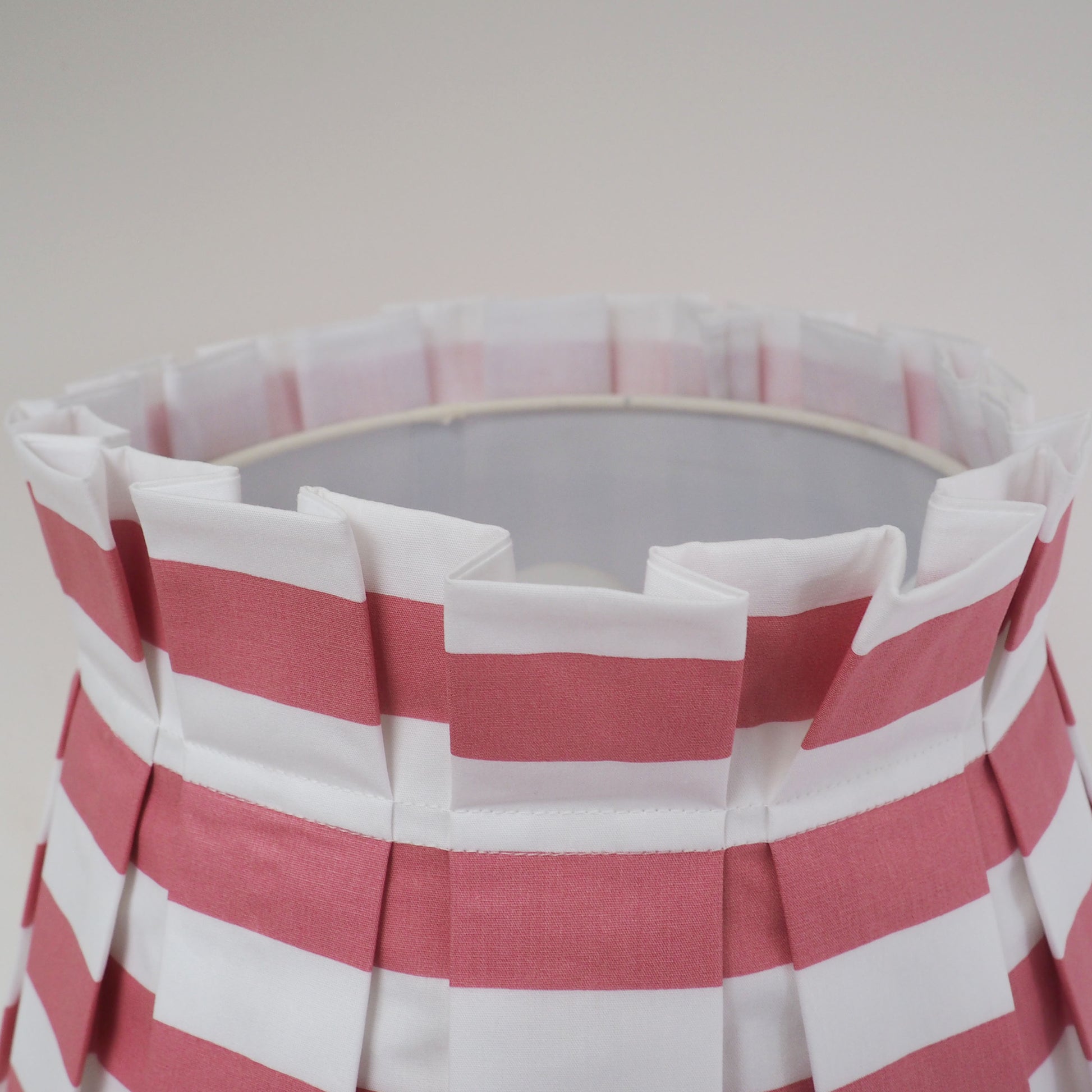 LARGE box pleat rose pink and white stripe fabric lampshade