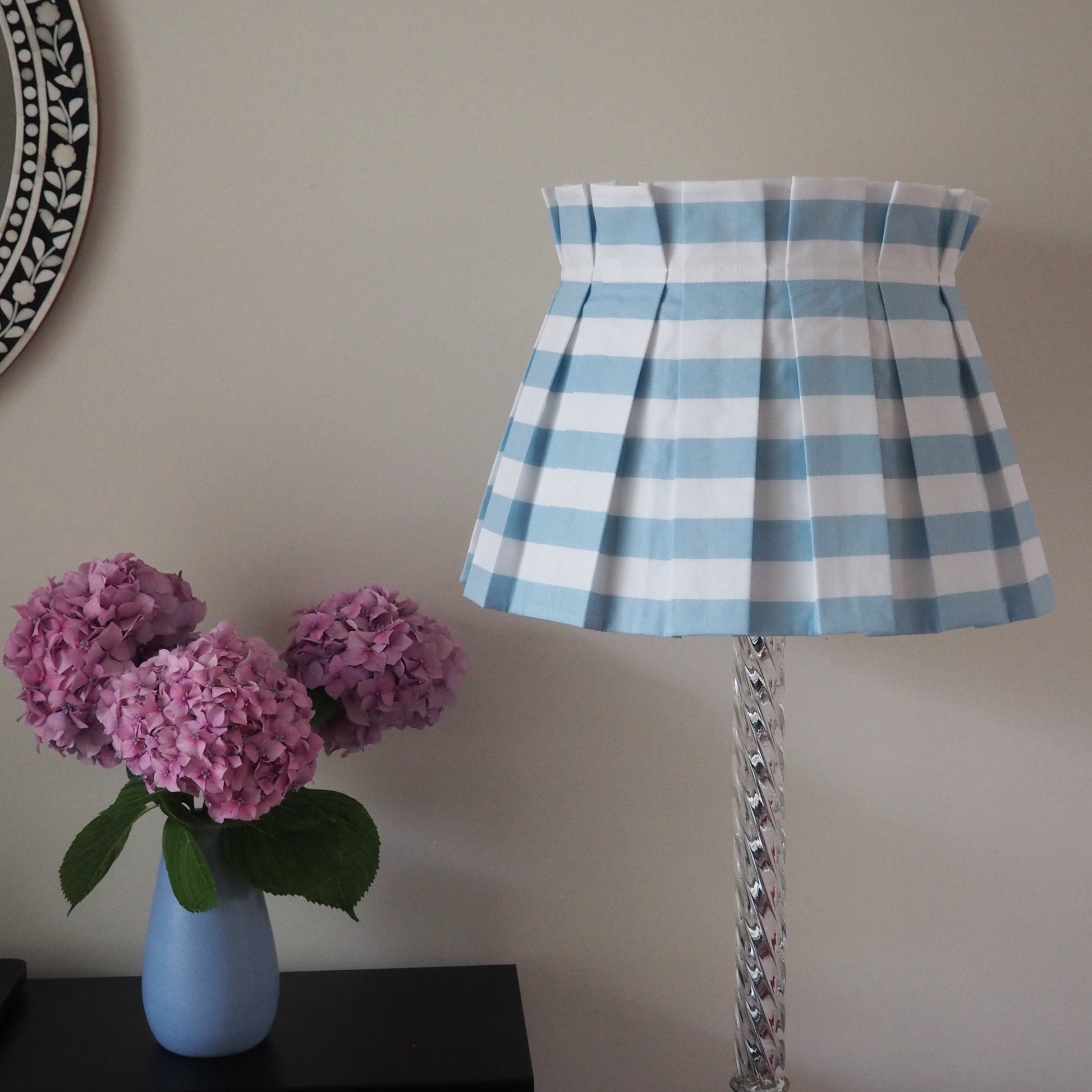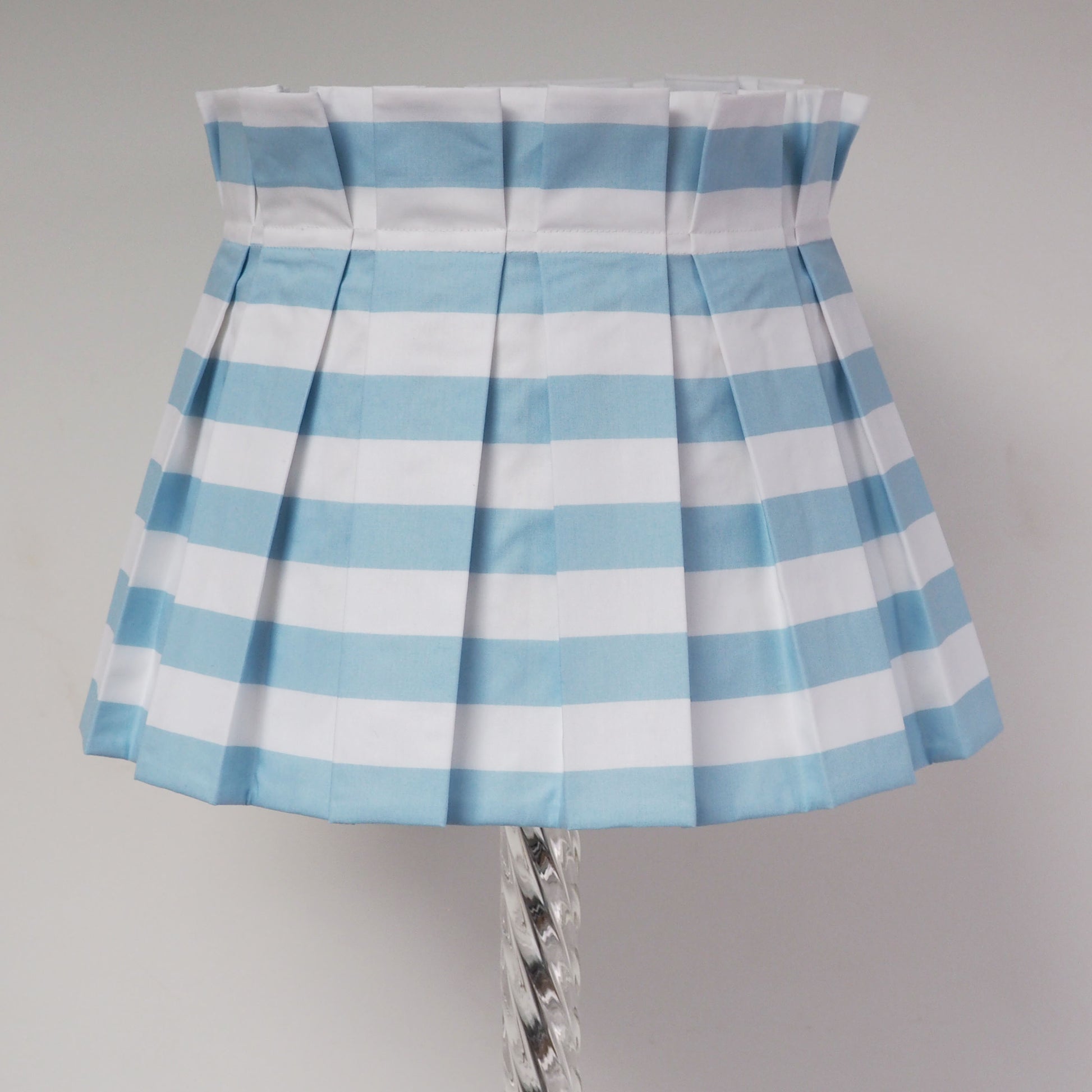 LARGE box pleat sky blue and white stripe fabric lampshade